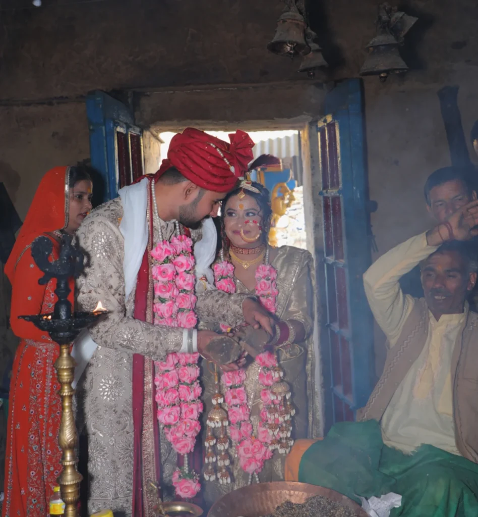 Vishnu officiated as Parvati’s brother, family side handled. Brahma served priest, kindling sacred fire sealing vows. That Akhand Dhuni burns eternally since—locals swear. Brahma Shila stone marks exact spot. Epic, cosmic, mind-bending legend lives through every phera today.
